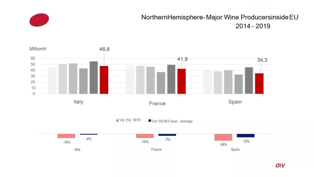 西班牙年產量降低24%,降幅最為明顯,法國意大利緊隨其后,降幅均為15%。