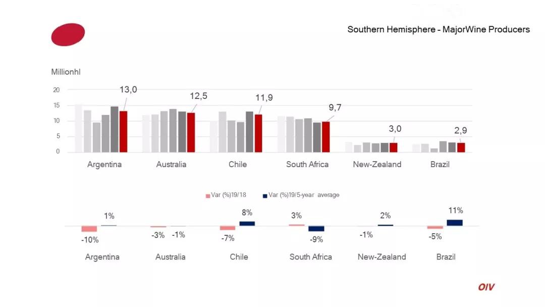 南半球葡萄酒產國中,阿根廷產量跌幅最重,下降10%,南非則逆勢增長3%。