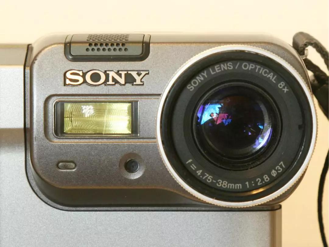 前者采用定焦鏡頭,后者采用 10 倍變焦鏡頭。這兩款相機將鏡頭組件設計在相機的左上角,但不影響左手持握,這一風格一直沿用到我們今天要將的 MVC-FD88 上。