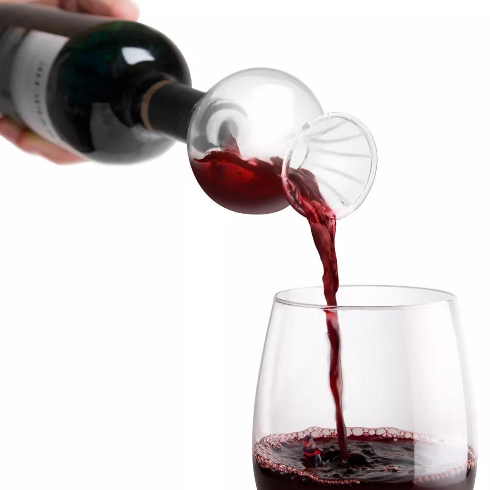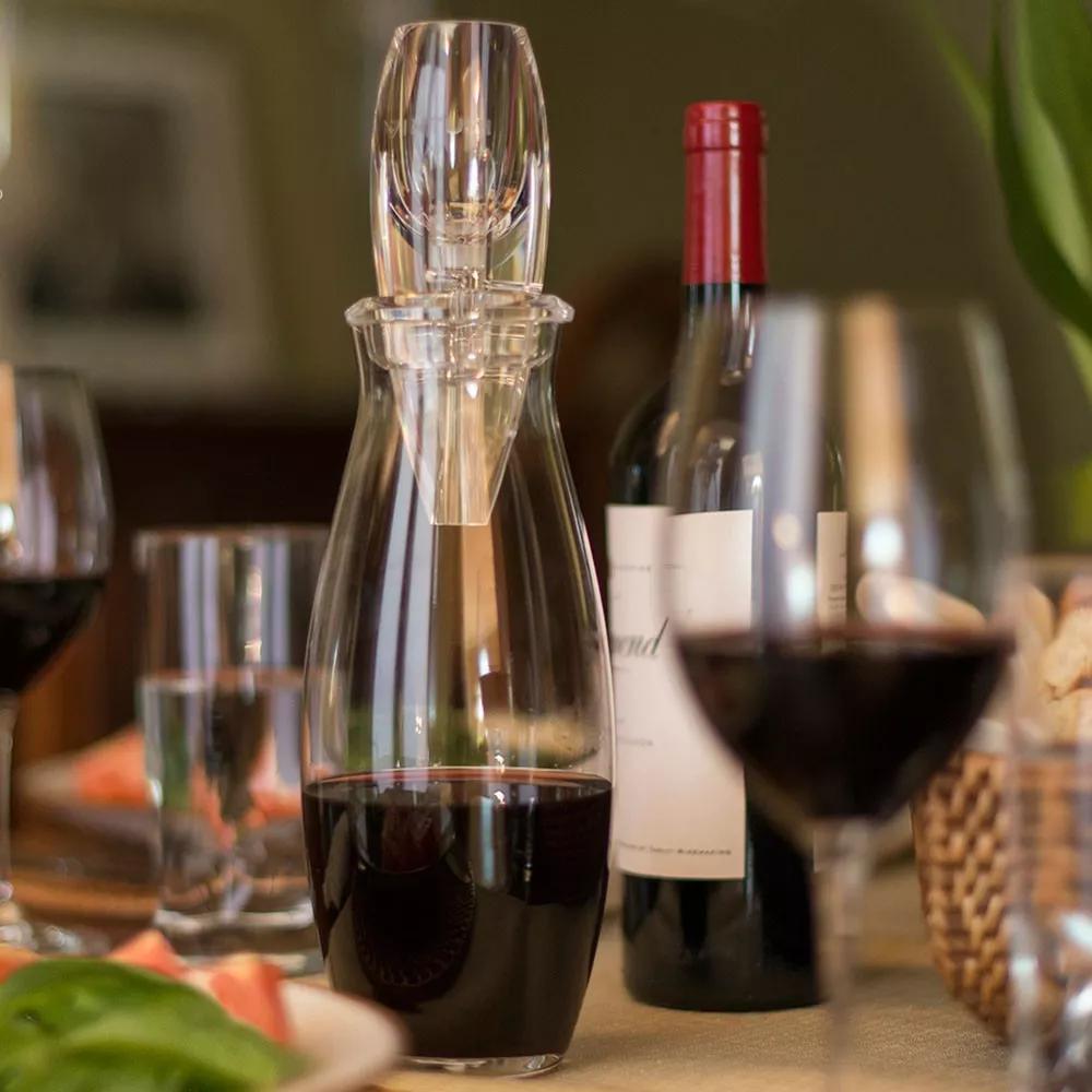 隨著科技的發展,目前市面上還有一些特殊的醒酒器。比如快速醒酒器,你只需要把它安裝在酒瓶口,然后像往常一樣倒酒即可。由于使用快速醒酒器醒酒,葡萄酒的氧化速度會比使用普通醒酒器時快很多,所以醒老酒的話,最好不要使用它。