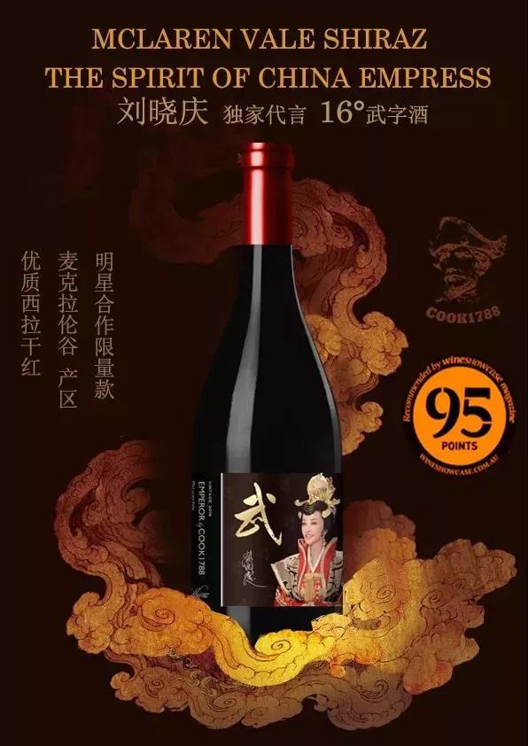 眼下活躍在話劇舞臺的老牌影星劉曉慶,今年也成為了一款澳大利亞葡萄酒的代言人,酒標上金燦燦的“武”字和劉曉慶最經典的武則天造型,很有一種把麥克拉倫谷變成陜西長安的氣勢。