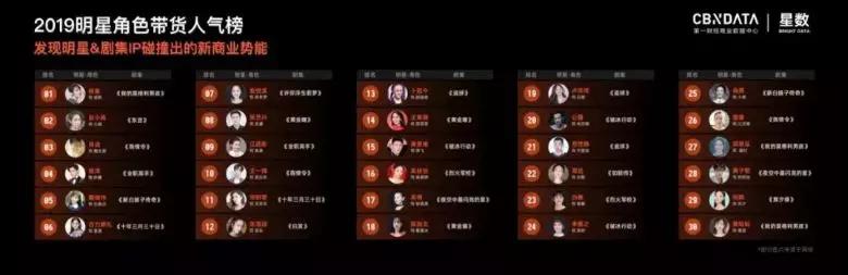最近首屆互聯網影視文娛盛典推出的號稱國內首份基于真實消費數據的角色帶貨力榜單“2019明星角色帶貨人氣榜”。