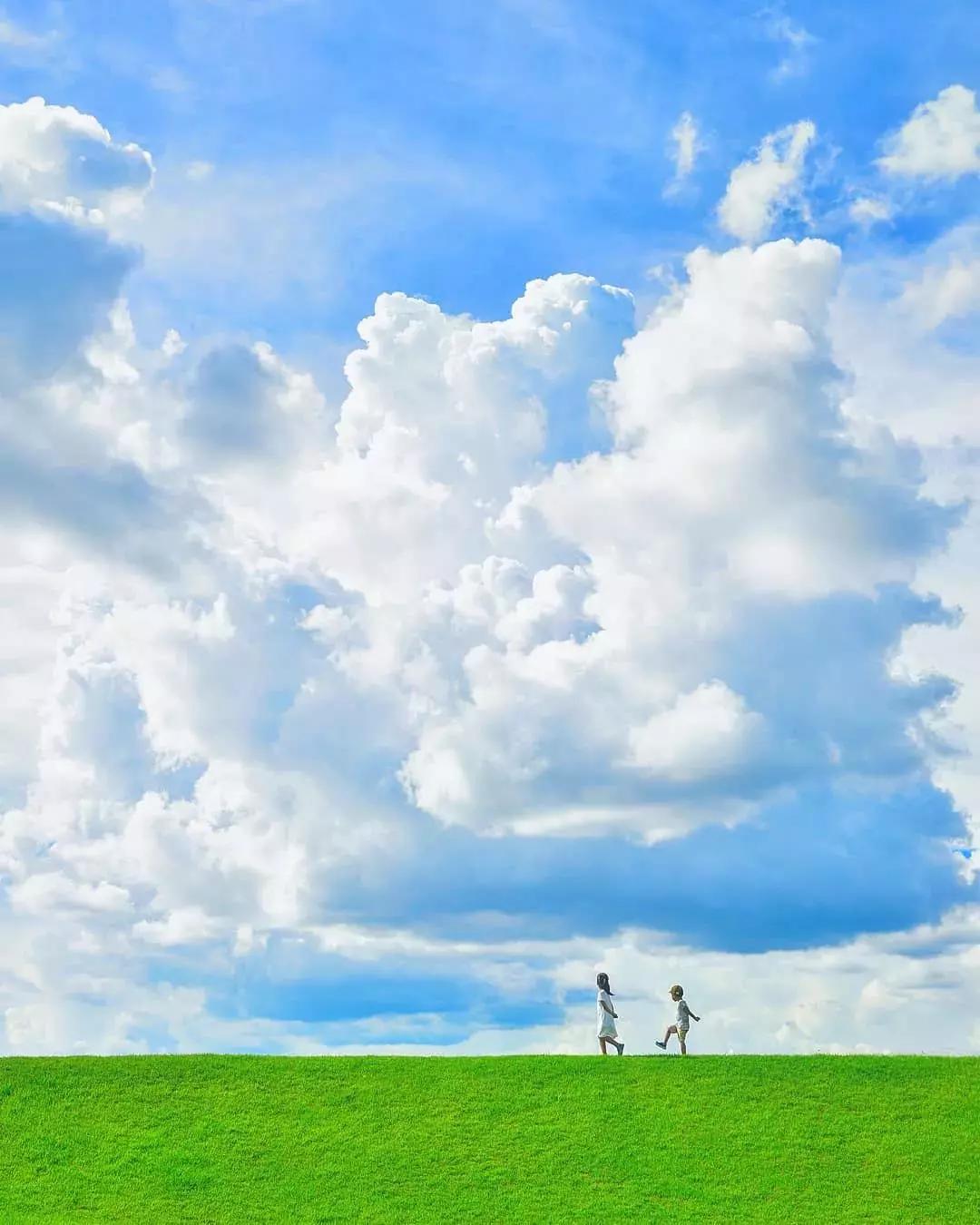 在夢幻般的風(fēng)景下,孩子的背影或者剪影成為了畫面的視覺焦點,這是梶原紀(jì)之作品的最大特點。