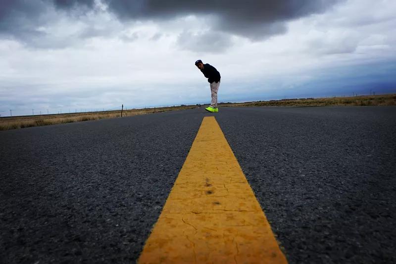 注意事項(xiàng):貼地拍攝,沒(méi)必要非要趴在地上,可以將相機(jī)貼近地面,然后順著路的方向,輕微的翹起鏡頭進(jìn)行拍攝,將路作為一個(gè)“引導(dǎo)線”,加深了畫面的縱深感。