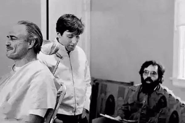 《教父》導(dǎo)演科波拉(右),主演白蘭度(左)、阿爾·帕西諾(中)。