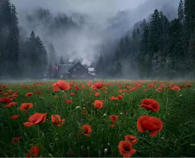 1、能夠起到引導線效果的前景。比如,下圖中的花,觀看者會通過花的軌跡一路看去,最后到達遠處的房子。