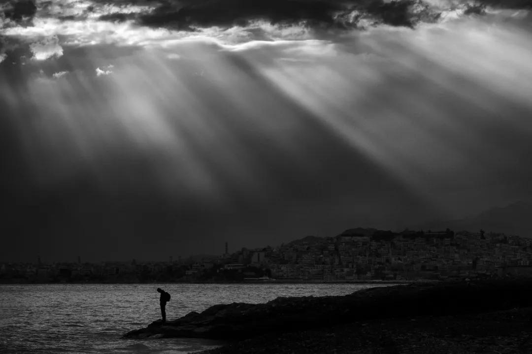 當拍攝黑白風景照片時,如果你經常覺得你的黑白照片中天空顯得過于平淡,一定要注意尋找「具有動感的天空」 ,例如抓住云層之間錯落形成最具張力效果的瞬間,或是陽光透過云層的傾瀉。