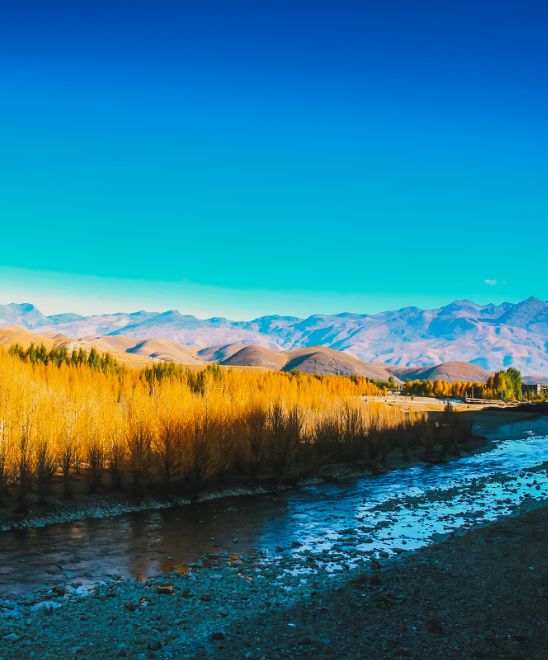 村落、河流、樺樹、青稞田、寺院,這里就是一幅旖旎的田園山水畫。每年9、10月,金燦燦的樹一列排開。