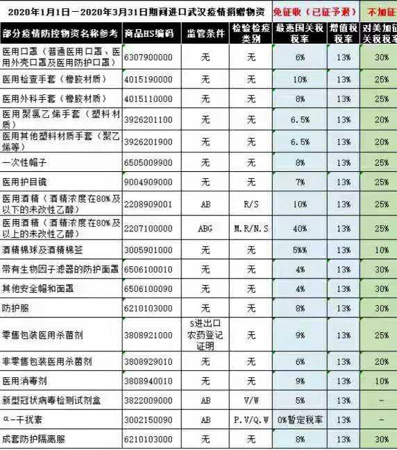 2020年2月1日,財政部 海關總署 稅務總局發布聯合公告,為進一步支持新型冠狀病毒肺炎疫情防控工作,自2020年1月1日至3月31日,實行更優惠的進口稅收政策。