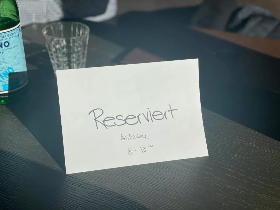 這是達沃斯小鎮離雪景名勝魔環山不遠處一個餐廳里,一張小咖啡桌上貼著預定的標簽。