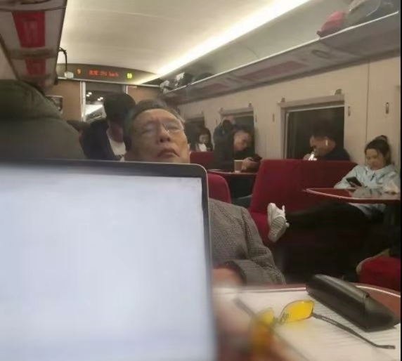 1月18日,84歲的鐘南山從廣州出發(fā)趕往武漢。當天航班已買不到機票,他擠上了17點開往武漢的高鐵列車。由于春運高鐵票緊張,他被安頓在了餐車一角,剛一落座便拿出文件研究。23點左右到達武漢住處,簡單聽取了武漢方面的情況后才結(jié)束一天的工作。