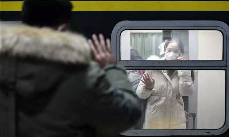 1月26日,河北省第一批赴鄂抗疫醫(yī)療隊隊員趙紫薇(后)在出發(fā)前與男友揮手告別。當日,由河北省衛(wèi)生健康委組建的河北省第一批赴鄂抗疫醫(yī)療隊從石家莊出發(fā)前往武漢,支援湖北抗擊新型冠狀病毒感染的肺炎疫情。這些醫(yī)療隊員來自河北省10個省直醫(yī)院和13個市三級醫(yī)院,共150人。