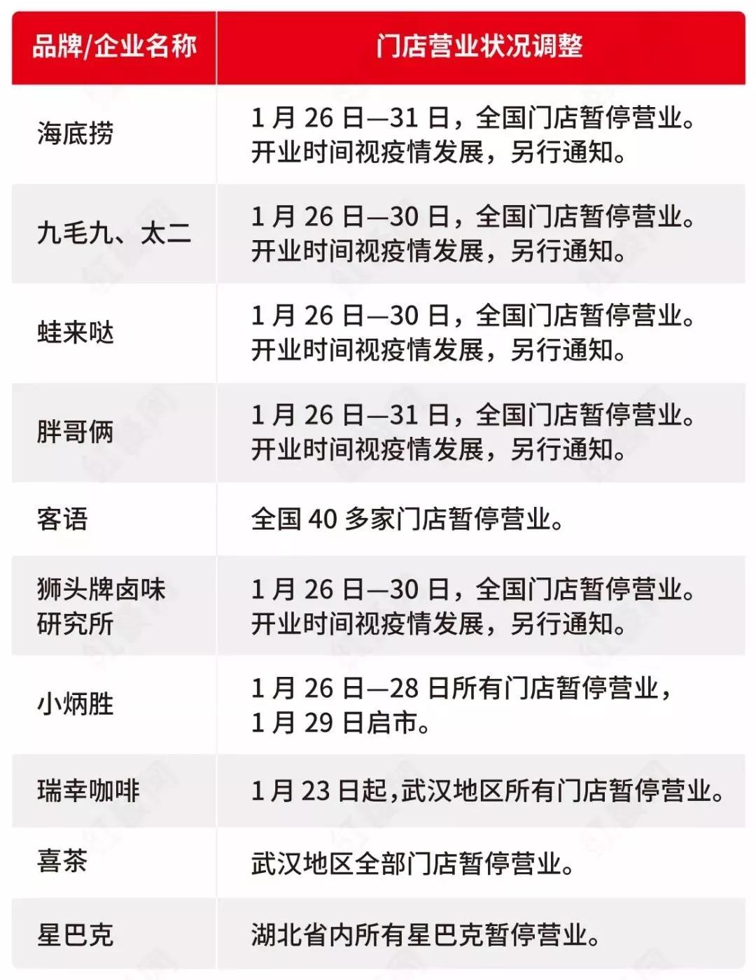 據(jù)媒體不完全統(tǒng)計(jì),海底撈、九毛九、太二、蛙來噠、胖哥倆、客語等品牌已經(jīng)宣布全國門店暫停營業(yè),具體開業(yè)時(shí)間另行通知。