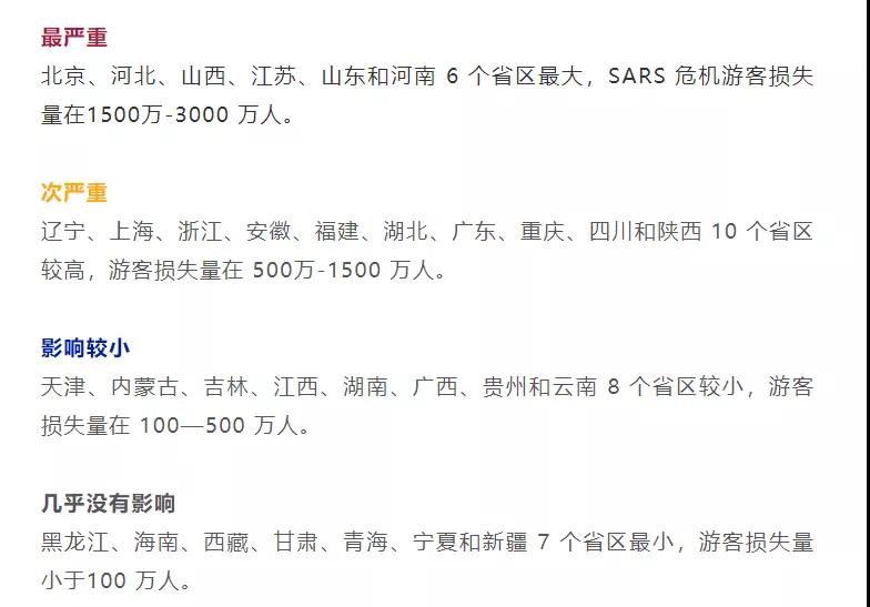 2003年SARS旅游業(yè)對不同地區(qū)造成不同級別的損失,北京、河北、山西、江蘇、山東和河南這6個(gè)省區(qū)最大。