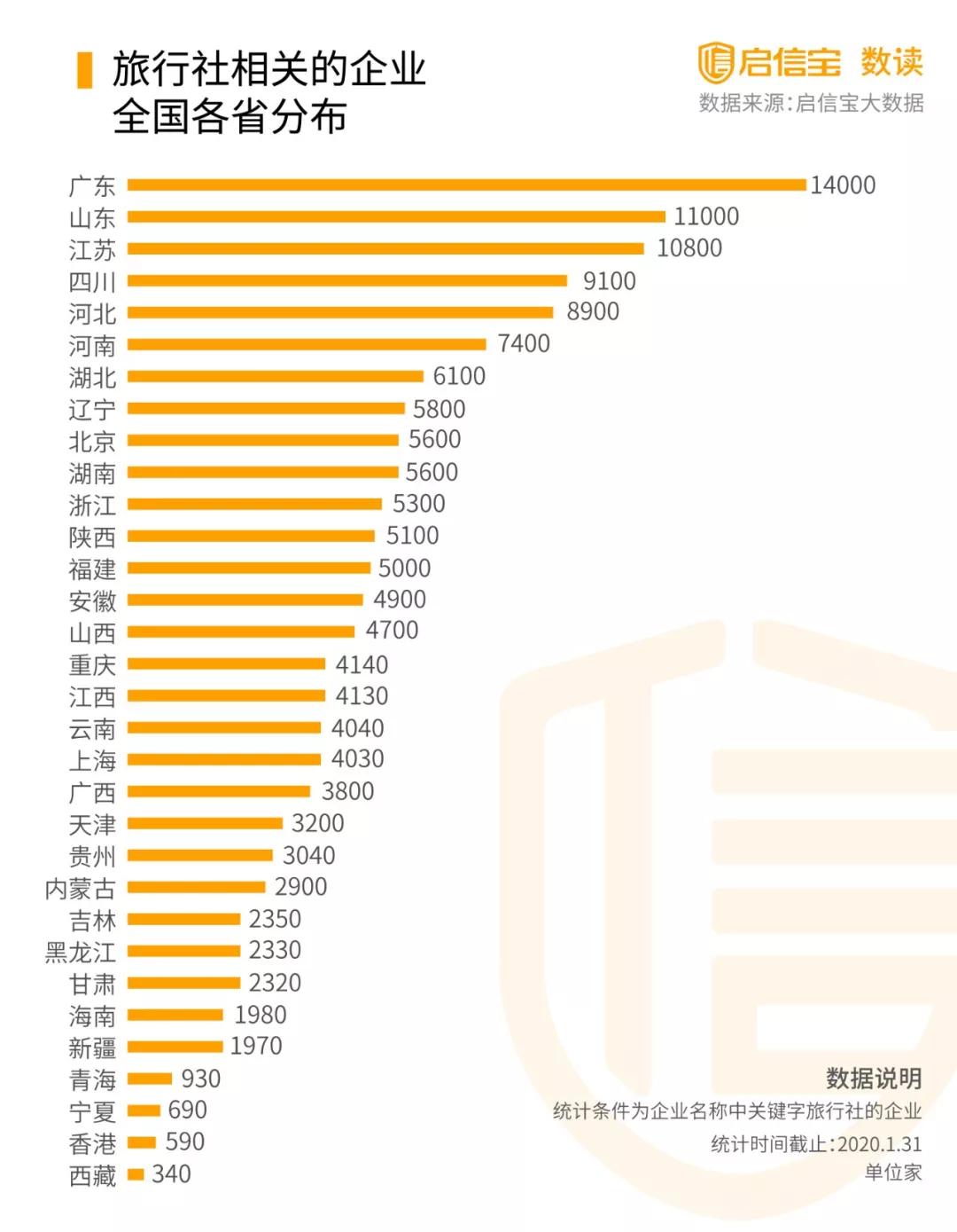 那么今年,根據(jù)啟信寶的數(shù)據(jù)統(tǒng)計(jì),全國共有153529家有旅行社業(yè)務(wù)的企業(yè),其中廣東、山東、江蘇分別數(shù)量為前三,可能損失會相對較大。