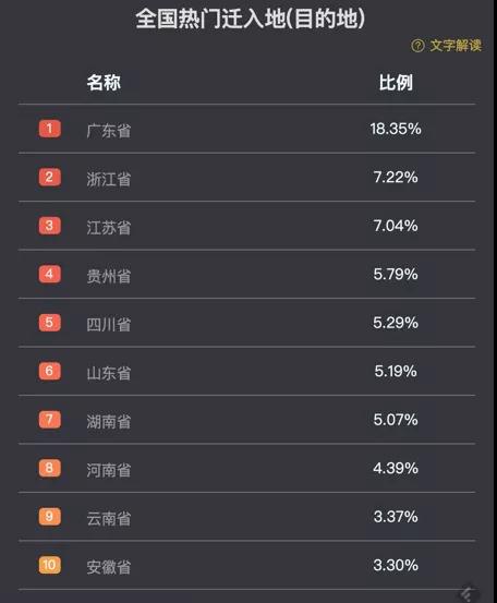按城市來(lái)看,人口流入前三位全是廣東的。