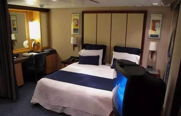海景房位于郵輪的外側,可以在房間內向外觀看,傳統的船舶有舷窗,現代郵輪則有更大的窗戶,視野相比內艙房更為開闊。海景房對于那些擔心擁擠的游客而言再理想不過了,面積一般在16-28平方米。海景房位置與郵輪的行進方向一致,游客可以每天在晨光中來,隨時欣賞海景。