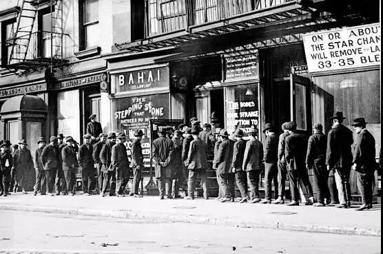 所以,1929年,世界大戰結束才10年,真正的經濟危機如約而至。破壞力強悍到世界大戰都只是預演。美國的工業水平幾個月就倒退到19世紀,銀行業破產,410億存款去擠兌60億現金,總統開支票都兌不到紙幣。德國失業人口加半失業人口占了總數的2/3。第一次世界大戰期間,英國咬牙頂住了金本位,等到大蕭條來也也得廢除。從1929年到1933年,全世界再次以為資本主義要結束了。