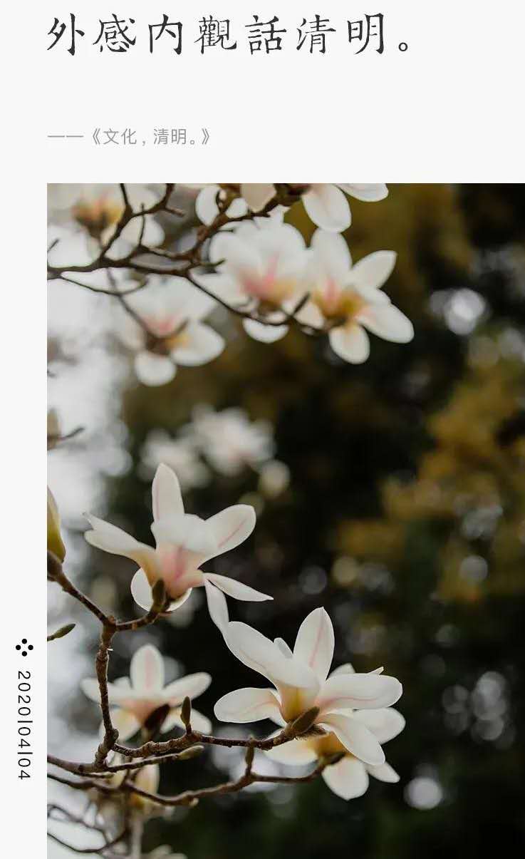 清明,我們又一次進入化文的狀態(tài)。細雨紛紛,煙柳垂淚,行人斷魂,是對逝者的緬懷和尊敬;萬物生長,惠風(fēng)和暢,天清地明,是對生者的祝福和期待;萬物有靈,春發(fā)幾枝,懵懂初醒,是對靈者的啟示和生發(fā)……