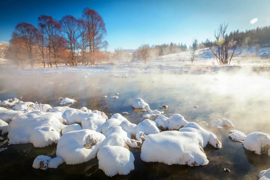 冬季的烏蘭布統儼然是一個白雪皚皚,銀裝素裹的冰雪童話世界,越野車進入塞罕壩森林公園時,道路兩邊都是鱗次櫛比的筆直的參天大樹(估計是松柏類),白茫茫的一片,甚至有幸一睹雪白的狐貍,或許是太冷了外出覓食,但是并沒有停留很久就不見了蹤跡,讓人懷疑是否出現過。這里沒有雪鄉著名的冰雪蘑菇屋,但這里有小河頭的雪饅頭;這里沒有哈爾濱五彩繽紛的冰雕王國,但這里有小巧精致的冰燈。這里的霧凇甚至比我12年在霧凇島看到的都要壯觀,唯美。