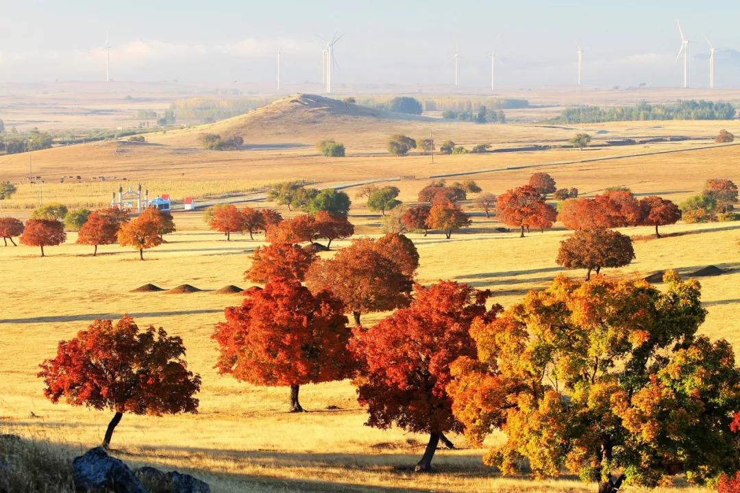很多人都認為金秋九月的草原都是枯黃的草,毫無亮點,但是唯獨烏蘭布統草原與眾不同,9月初,軍馬場開始慢慢變換色彩,從茵茵綠草慢慢變得金黃遍野,而秋日的白樺林是最值得期待的,她宛若一個亭亭玉立的少女,白色的樹干筆直俊秀,金黃的葉子如蝴蝶翩翩起舞。10月秋風蕭瑟,樹葉紛紛凋零,滿地金黃,此時來烏蘭布統又是另一番景象了 。一般情況下,每年的9月中旬到十一黃金周,都是壩上流光溢彩之最的時候,看漫山遍野,層林盡染,斑斕的色彩讓人心醉。