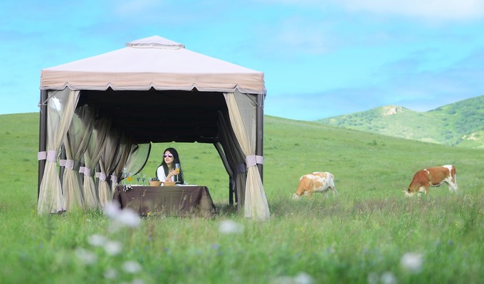 閉上眼睛,思緒飄向遙遠的內蒙壩上草原,在蒼茫的草原之上,精致的帷幔,浪漫的輕紗,香檳美酒,可口果盤,美味餐包,手抓羊肉……觥籌交錯間的歡聲笑語一直縈繞在我心頭,回來之后依然會想起那個詩畫般的夢境,久久不能忘懷。去壩上草原之前,我從來沒有想過可以在大草原感受一次高逼格冷餐會,不再是水泥堆砌的四方格子,不再是吵吵嚷嚷的餐廳,一同舉杯,敬藍天白云,敬蒼茫草原,敬身邊這些可愛的人兒。