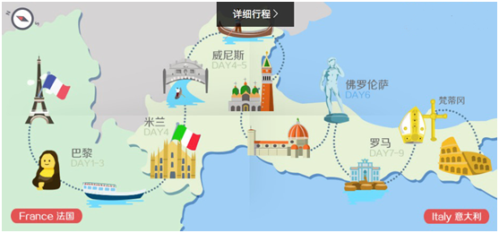 達人設計思路:此條線路的城市法國和意大利最經典的城市,如果你首次前往法意,選擇這個玩法是最合適的。巴黎進,羅馬出,機票價格便宜,中途經過時尚之都米蘭,水城威尼斯,文藝復興之都佛羅倫薩。