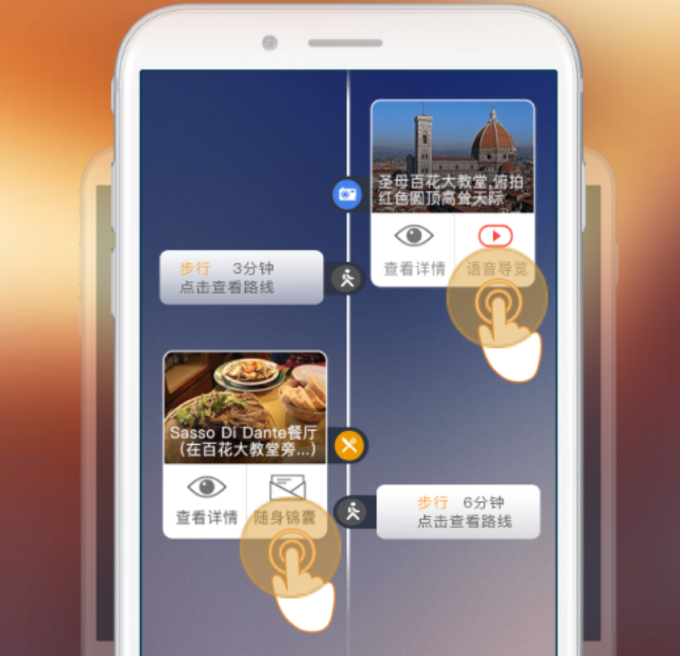 3、APP智能導航:再無需拿著厚重的A4紙出行,我們有智能APP導航幫你指引每天的行程路線,包括每天的游玩項目,景點之間的步行路線、乘車路線、時長全部提前規劃好,抵達目的地后只需輕輕一點跟著導航走,就能抵達自己的游玩目的地。
