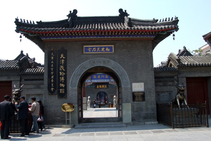 天后宮位于古文化街中心,也是古文化街古跡的核心,祭祀保佑出海遠(yuǎn)航平安的天后娘娘,已有600余年歷史。現(xiàn)在是天津民俗博物館的所在地,館內(nèi)介紹了天津城歷史、民俗,陳列著明代天津城磚、清代漕運模型、清代水機(jī)等文物。