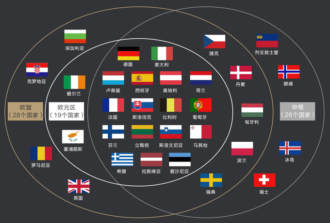 歐盟成員國不等于申根國(注:英國已提請退歐,尚未辦完退歐手續)