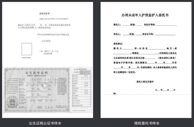 ①兒童的出生醫學證明公證認證/親屬關系公證書認證;