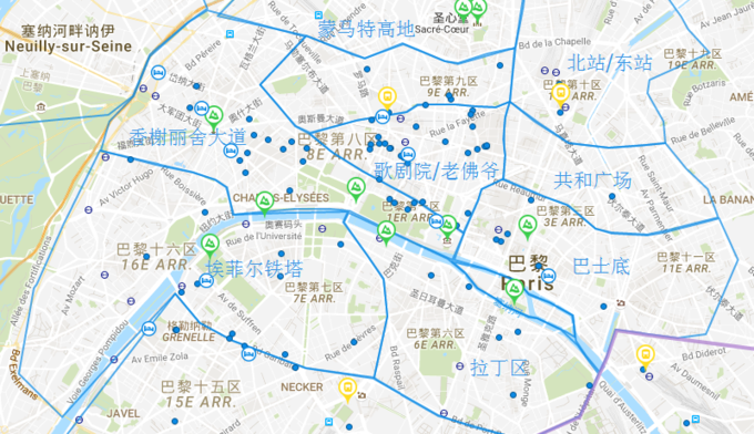 不建議選擇的區域:巴黎北部,例如北站和東站、蒙馬特高地等靠近93省的區域。該區域治安較差,是搶劫盜竊案高發區域。尤其是移民聚居地-93省圣丹尼斯一帶,國內低價旅行團為降低成本會選擇此處的酒店,目前已發生多起旅行團隊集體被搶劫的案例。