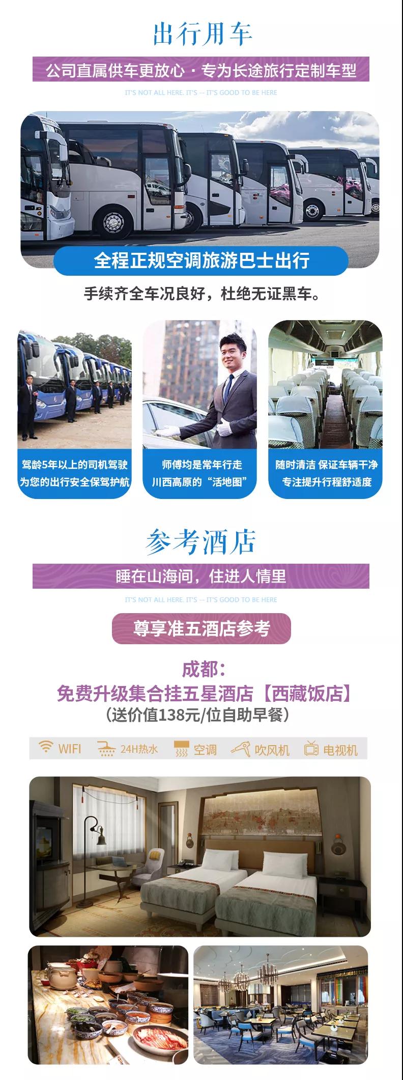 1、關于車輛交通:目前四川旅游市場8座以下車輛無法辦理旅游牌照,請游客知悉,以此理由提起的投訴我方拒不受理,望您諒解。