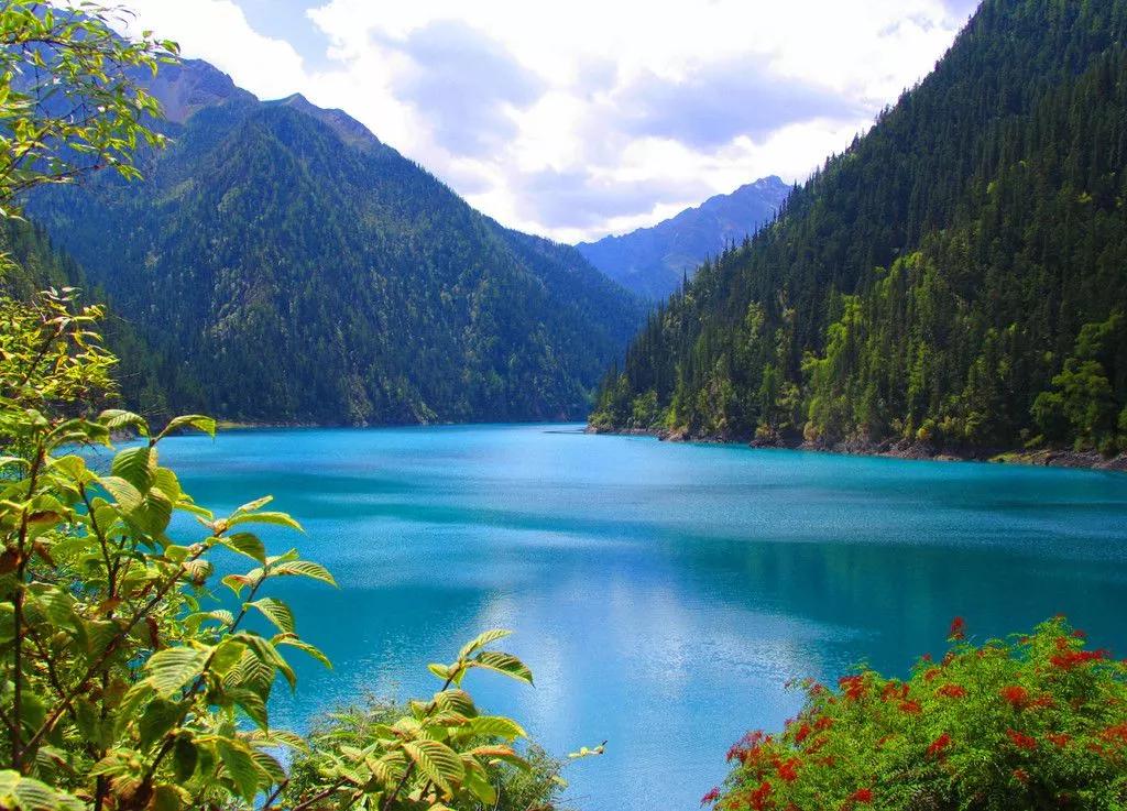 九寨溝得名于溝內有九個藏族村寨,以“九寨六絕”——翠湖、疊瀑、彩林、雪峰、藏情、藍冰而聞名天下。遠望雪峰林立,白雪皚皚;近看碧水澄澈,清可見底;除卻如夢似幻的自然景觀,還有藏家木樓、晾架經幡、棧橋、磨房、藏族習俗及神話傳說構成的人文景觀,也因這不二的美,無數熱門影視劇在此取景。水是九寨溝景觀的主角,溝中分布有多處湖泊、瀑布群和鈣華灘流,懸殊的高差、多樣的氣候、使這里山明水秀。碧綠晶瑩的溪水好似項鏈般穿插于森林與淺灘之間。色彩斑斕的湖泊和氣勢宏偉的瀑布令人目不暇接。原始森林覆蓋了九寨溝一半以上的面積。林中植物種類繁多,多種野生動物繁衍棲息于此,林地上積滿厚厚的苔蘚,散落著鳥獸的羽毛,充滿原始森林的風貌,使人仿佛置身于美妙的世外天地。