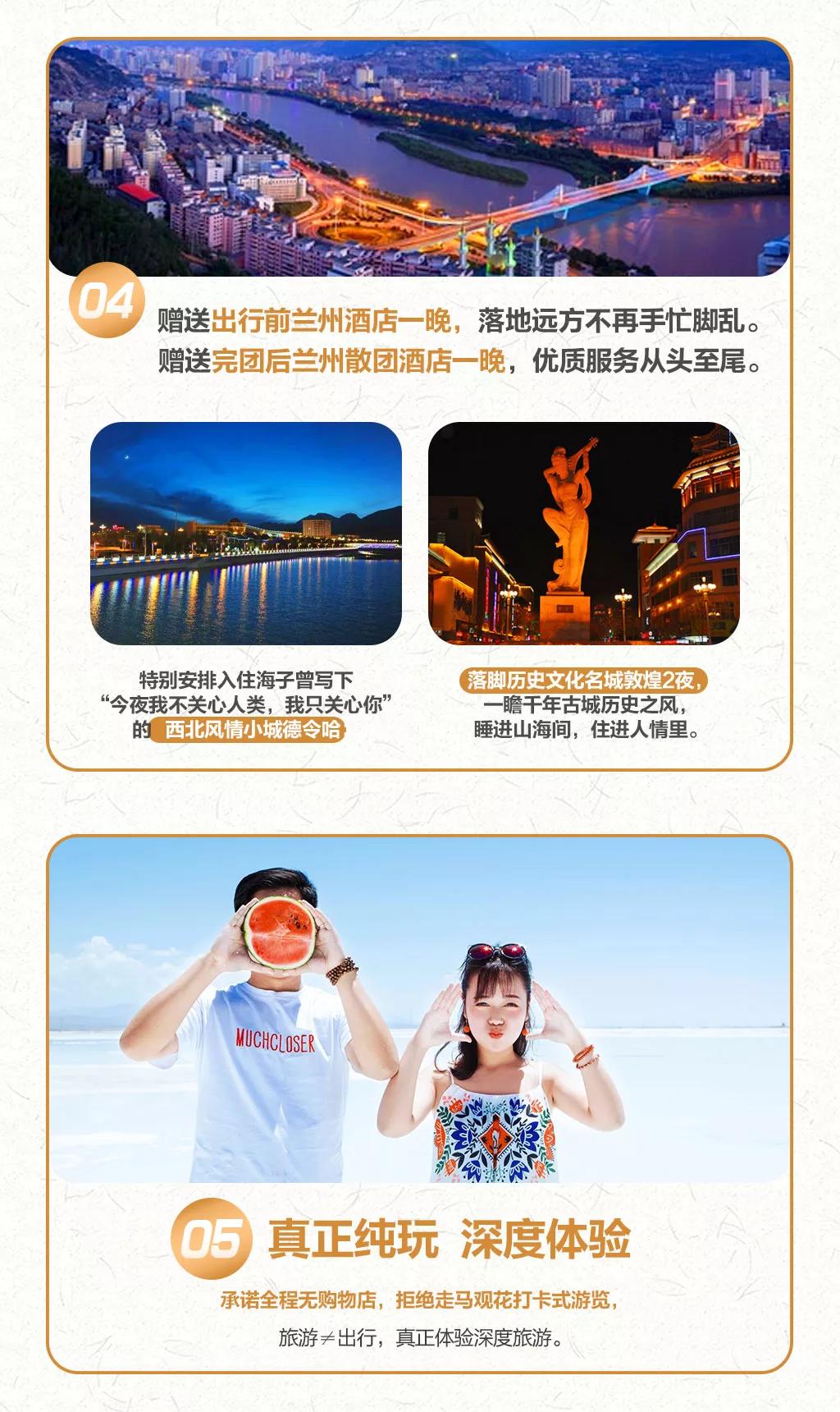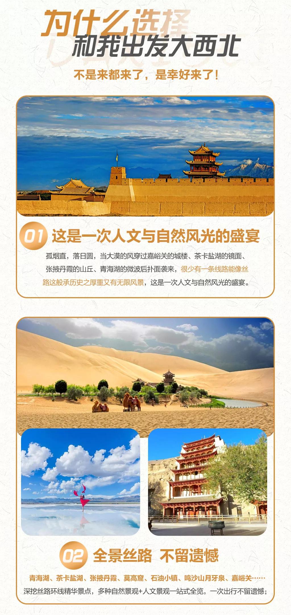 溫馨提示:西北地區天氣干燥,旅途的過程中請大家多喝水,注意防曬;敦煌《又見敦煌》演出,旅游淡季298元/人,旺季368元/人起;果木烤全羊費用根據羊的大小決定,由參與活動的游客均攤,一般10人一桌,人均消費160元左右。