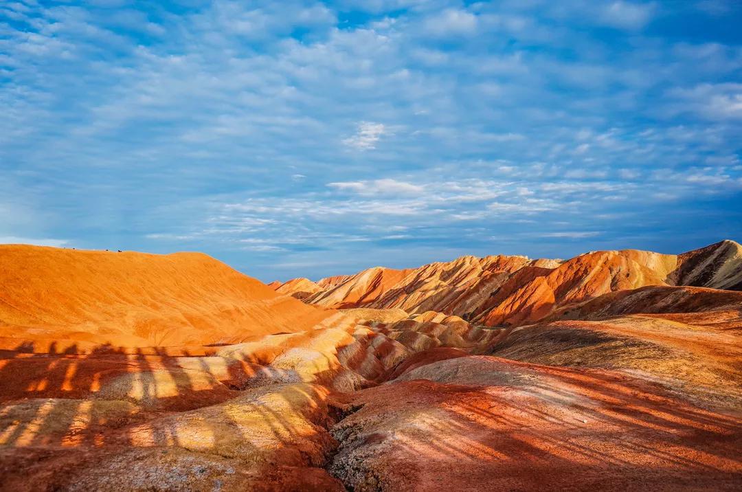 早起我們告別蘭州前往張掖【丹霞地質公園】,這里的自然景觀得天獨厚,是中國丹霞地貌發育最大最好、地貌造型最豐富的地區之一。景區還是張藝謀的電影《三槍拍案驚奇》、姜文執導的電影《太陽照常升起》、知名電視劇《神探狄仁杰》的外景地。2005年11月由中國地理雜志社與全國34家媒體聯合舉辦的“中國最美的地方”評選活動中,當選為“中國最美的七大丹霞”之—。如果天氣晴好,在這里可以觀賞到一場唯美的落日盛宴。感受落日的余暉落在起伏的丘陵上,晚霞般的大地與落日交相輝映,見慣了城市中的鋼筋混凝土,此時不由的心神也會感到空曠了。