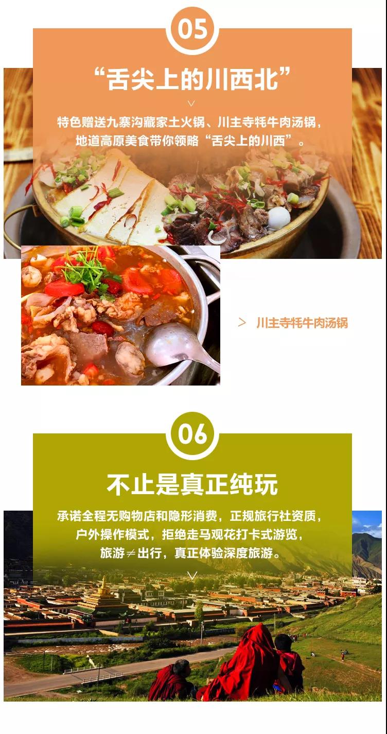 用餐:含早餐,晚餐贈送九寨溝走進藏家藏式土火鍋;午餐敬請自理