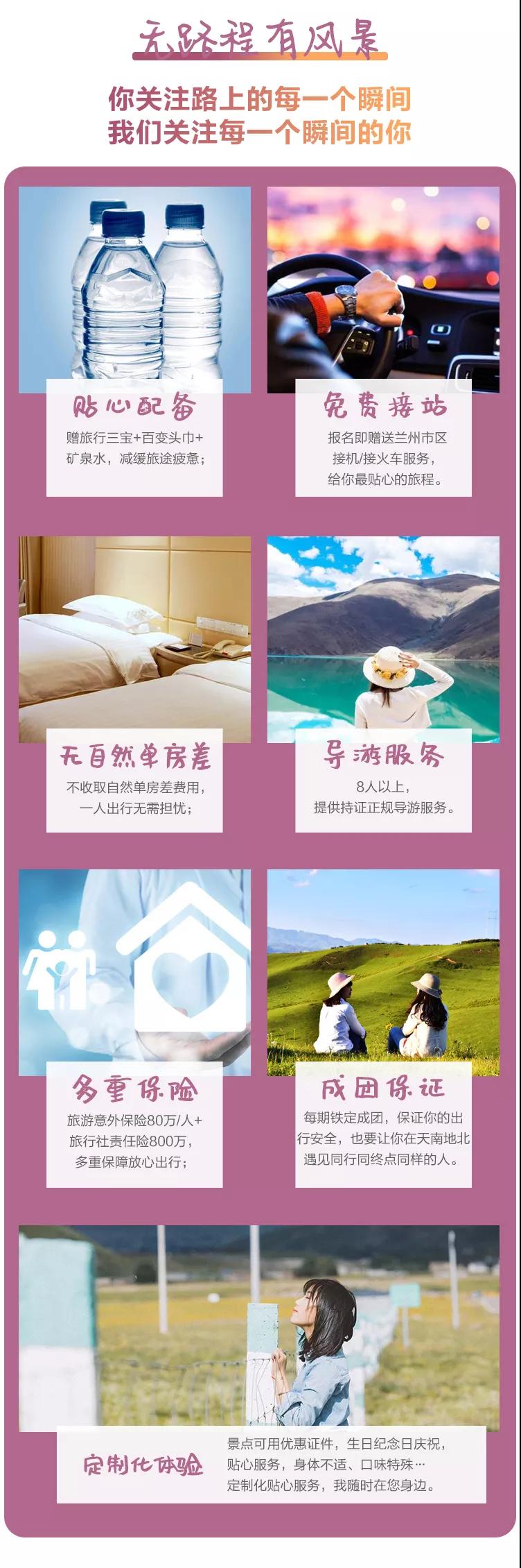 3、沿途景區景點、餐廳、廁所、加水點、高原緩沖區內設有小賣部、超市、旅游紀念品、手工藝土特產等販賣攤點,非我方安排,請游客根據自身需求及興趣選擇消費,并保留好購物小票以便后續維權;購物時請保管好隨身攜帶的物品,不到人多、擁擠的地方購物,不當眾清點錢包里的鈔票,也不隨商品推銷人員到偏僻地方購物或取物。
