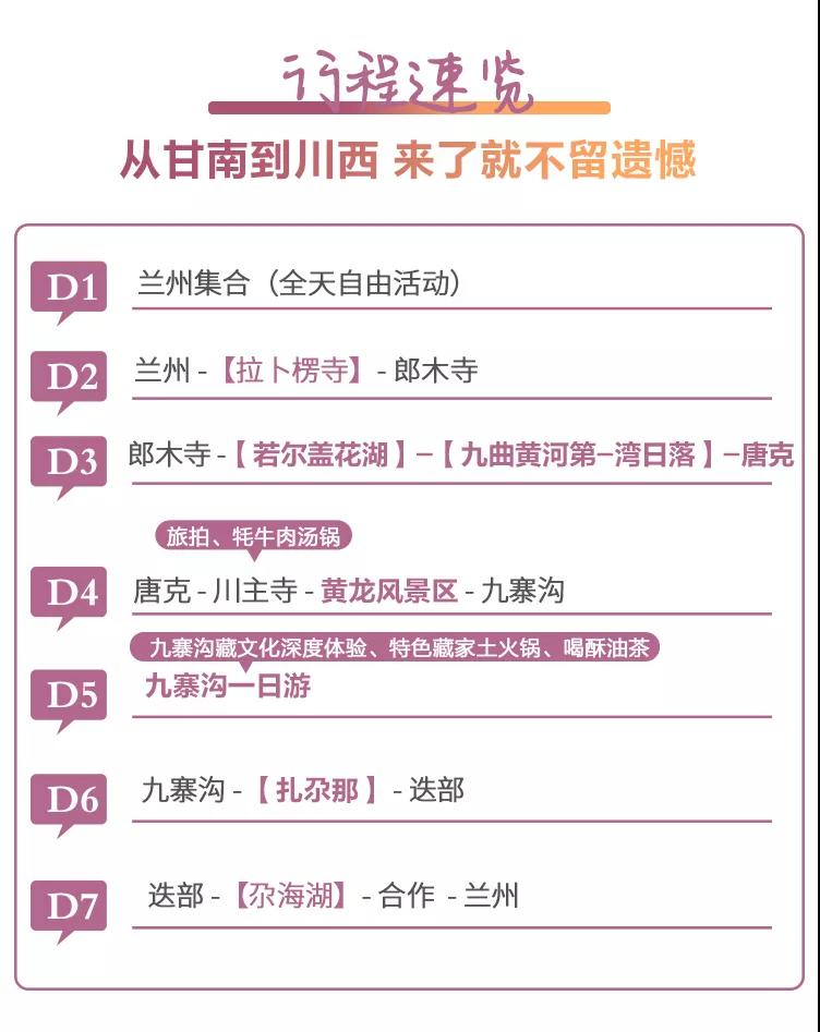 請對應使用我方甘南九寨7日行程,因使用其它行程造成的投訴,責任自負;請仔細閱讀以上行程文檔,同意并保證遵守我方安排,以免為您帶來不必要的麻煩;如產生合同糾紛或人身意外事故,按《中華人民共和國合同法》、《道路交通法》、《保險賠償條例》裁定;本行程作為旅游合同附頁與旅游合同同等法律效力。
