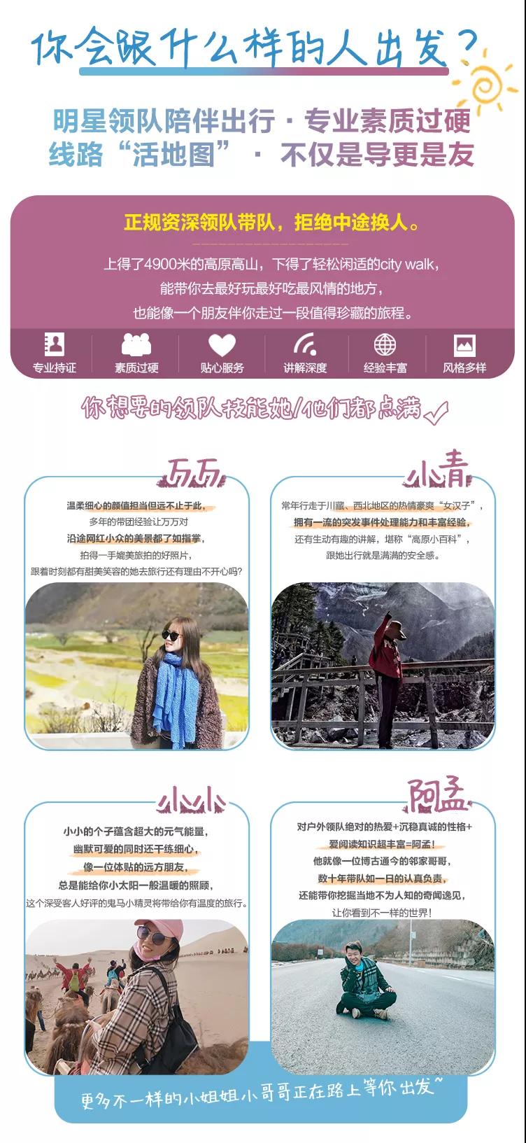 3、九寨溝面積較大游客需求不一,因此主要以游客自助游形式游覽,如無導游陪同望您諒解。游覽開始前導游會與您約定好集合時間,請務必按時到達指定地點,避免耽誤大家接下來的行程;