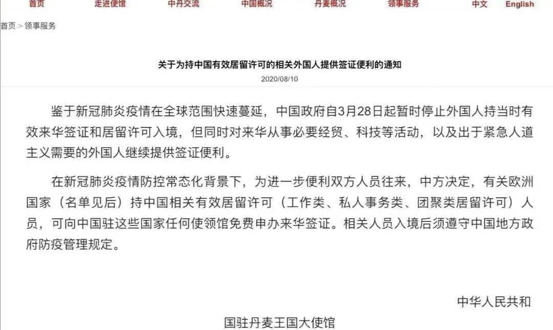 關(guān)于為持中國(guó)有效居留許可的相關(guān)外國(guó)人提供簽證便利的通知