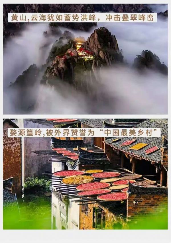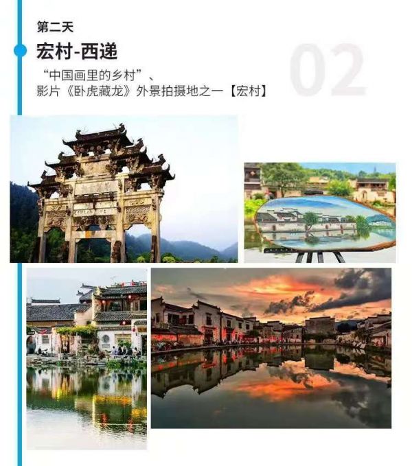 早上:08:00-08:30 各酒店接客人后出發, 酒店早餐后乘車前往 “中國畫里的鄉村”、影片《臥虎藏龍》外景拍攝地之一【宏村】,游覽約2小時。湖光山色與層樓疊院和諧共處,自然景觀與人文內涵交相輝映,是宏村區別于其他居民建筑布局的特色,從整個外觀上說,宏村是古黟桃花源里一座奇特的牛形古村落,背倚黃山余脈羊棧嶺、雷崗山等,地勢較高,有時云蒸霞蔚,如濃墨重彩,有時似潑墨寫意,四周山色與粉墻青瓦倒映湖中,好似一幅徐徐展開的山水畫卷,吸引了眾多愛好寫生、攝影者及影視作品紛至沓來。宏村整個整個村落占地30公頃全村現完好保存明清民居140余幢,承志堂“三雕”精湛,富麗堂皇,被譽為“民間故宮”。