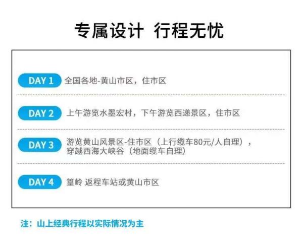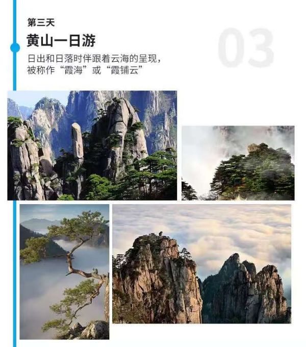 酒店接客人后出發,車赴黃山風景區換乘中心,換乘【景區交通車】至云谷寺(大約30分鐘),步行【或自愿自費乘云谷纜車(單程80元/人次自理)】至白鵝嶺索道站,游覽【黃山風景區】(備注:黃山登山游覽路線可逆行,根據當日客情而定),游覽始信峰:觀連理、龍爪、探海、臥龍等十大名松;童子拜觀音、十八羅漢朝南海、猴子觀海等巧石群;經慧明橋游北海景區觀夢筆生花、散花塢、筆架峰等景點;經團結松到西海排云亭觀景臺處觀賞:仙人曬靴、武松打虎等巧石。