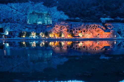 龍門石窟位于河南省洛陽市區南面12公里處,是一個風景秀麗的地方,這里有東、西兩座青山對峙,伊水緩緩北流。遠遠望去,猶如一座天然門闕,所以古稱“伊闕”。自古以來,為游龍門的第一景觀。