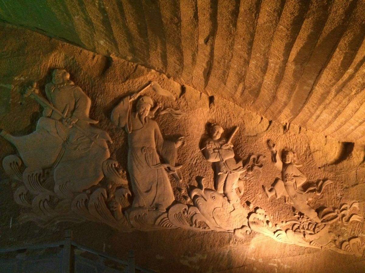 在最大的石廳里,壁上遍布八仙題材的巨大浮雕。只聽一名游客責問講解員:“這就是你們所謂的世界第九大奇跡嗎?”原來他發現這浮雕竟是水泥鑄成。查龍游地區旅游資料:石窟所在景點原稱小南海,發現、開發至今已有十多年,只是一直沒有做響,當地想了許多辦法,在石窟里建神話浮雕也是其中一項“杰作”,近幾年更名為龍游石窟,用許多“謎”包裝成“世界第九大奇跡”。浙江古采石場眾多,發展成旅游點的,以紹興的柯巖、東湖、吼山最為馳名,但都實話實說,龍游又何必要故弄玄虛憑空為世上添一個“謎”?