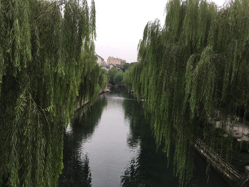 濱河廣場沿護城河南北兩岸呈帶狀,是泉城廣場內的親水空間,形成了獨具特色的城市步行體系(環城公園游覽路線)。除保留原河岸種植的垂柳外,岸邊區設計了花壇、花缽、坐椅、石凳。在地下商場北出入口,建筑物上沿部分的種植池內,栽植迎春、常春蔓、爬墻虎等藤本植物。濱河廣場地面鋪鵝卵石及彩色地面,小橋流水、亭臺水榭,名泉環佩,泉水淙淙,楊柳依依,又現“家家泉水、戶戶垂楊”的勝景。濱河廣場宛如小家碧玉,溫婉玉潤,帶給你江南水鄉般的清涼。