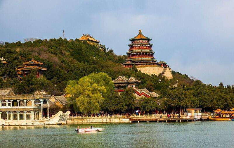 頤和園,中國清朝時期皇家園林,前身為清漪園,坐落在北京西郊,距城區15公里,占地約290公頃(2.9平方千米),與圓明園毗鄰。它是以昆明湖、萬壽山為基址,以杭州西湖為藍本,汲取江南園林的設計手法而建成的一座大型山水園林,也是保存最完整的一座皇家行宮御苑,被譽為“皇家園林博物館”。