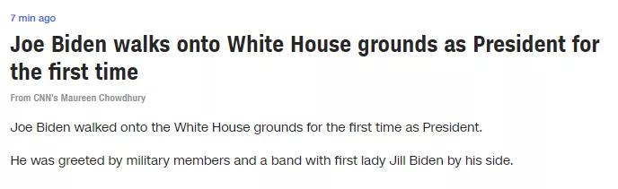 剛剛,拜登首次以美國(guó)總統(tǒng)身份步入白宮