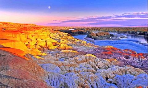 后前往【五彩灘】(含門票)五彩灘一河兩岸,南北各異,是國家4A 級景區。我國唯一的一條注入北冰洋的河流――額爾齊斯河穿其而過。與對岸蔥郁青翠的河谷風光遙相輝映,可謂“一河隔兩岸,自有兩重天”。而南岸卻是綠樹葳蕤,連綿成林,遠處逶迤的山巒與戈壁風光盡收眼底后座大巴車前往哈巴河酒店。游覽結束后前往北屯或福海入住酒店。