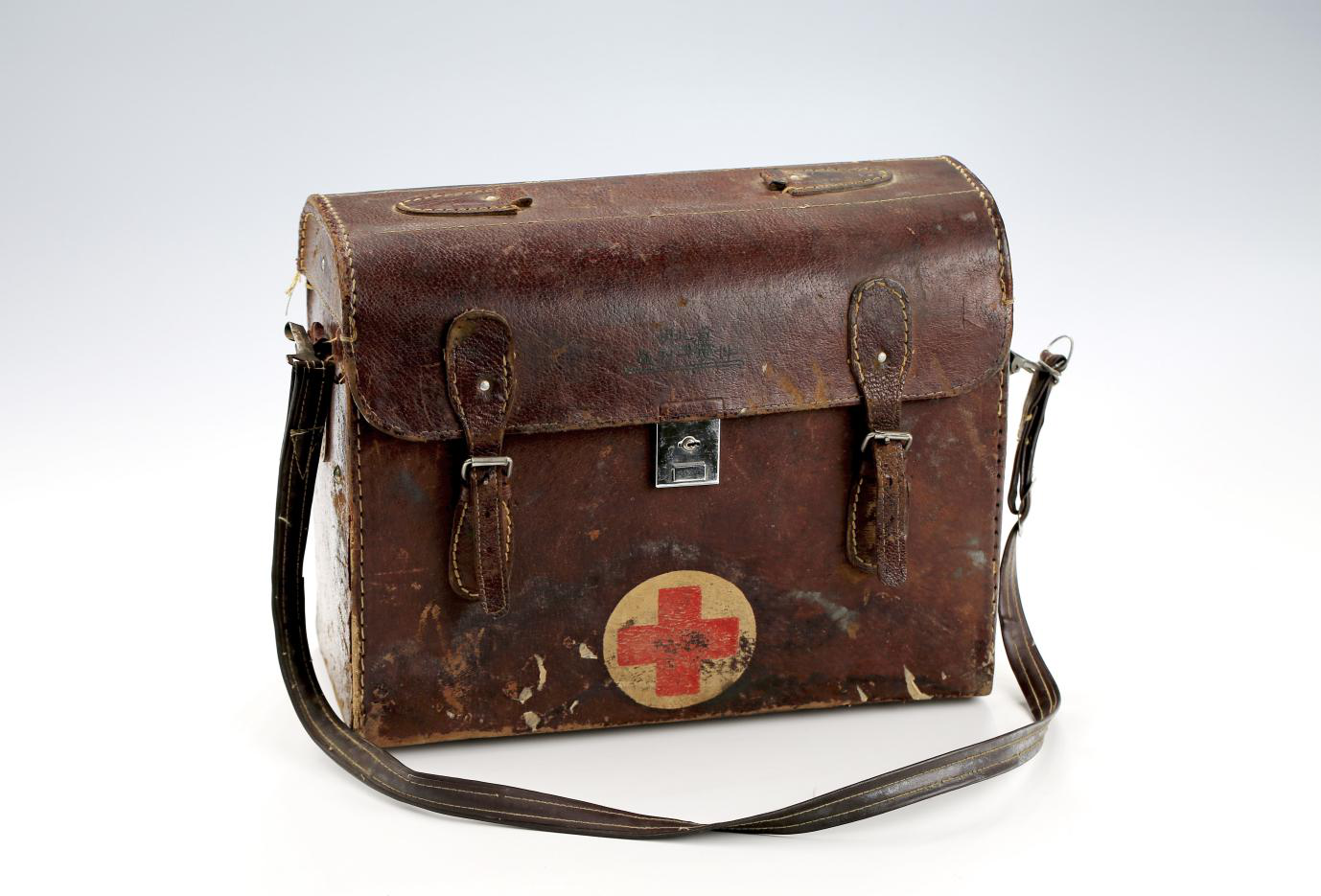 這只藥箱年代為二十世紀八十年代初,材質為皮革。長33厘米,寬15厘米,高26厘米,是國家一級文物。